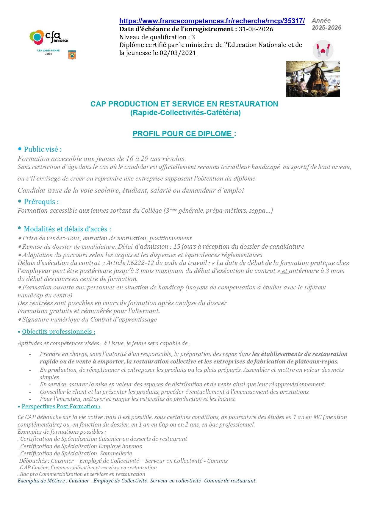 CAP Production et Service en Restauration